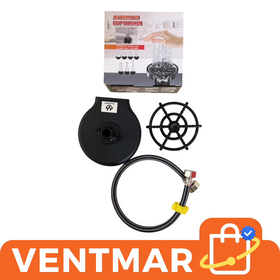 Este lavador automático de vasos para bacha permite limpiar vasos, copas y botellas fácilmente con solo presionarlos sobre el sistema de enjuague. Ideal para cocinas modernas, bares o uso doméstico diario.